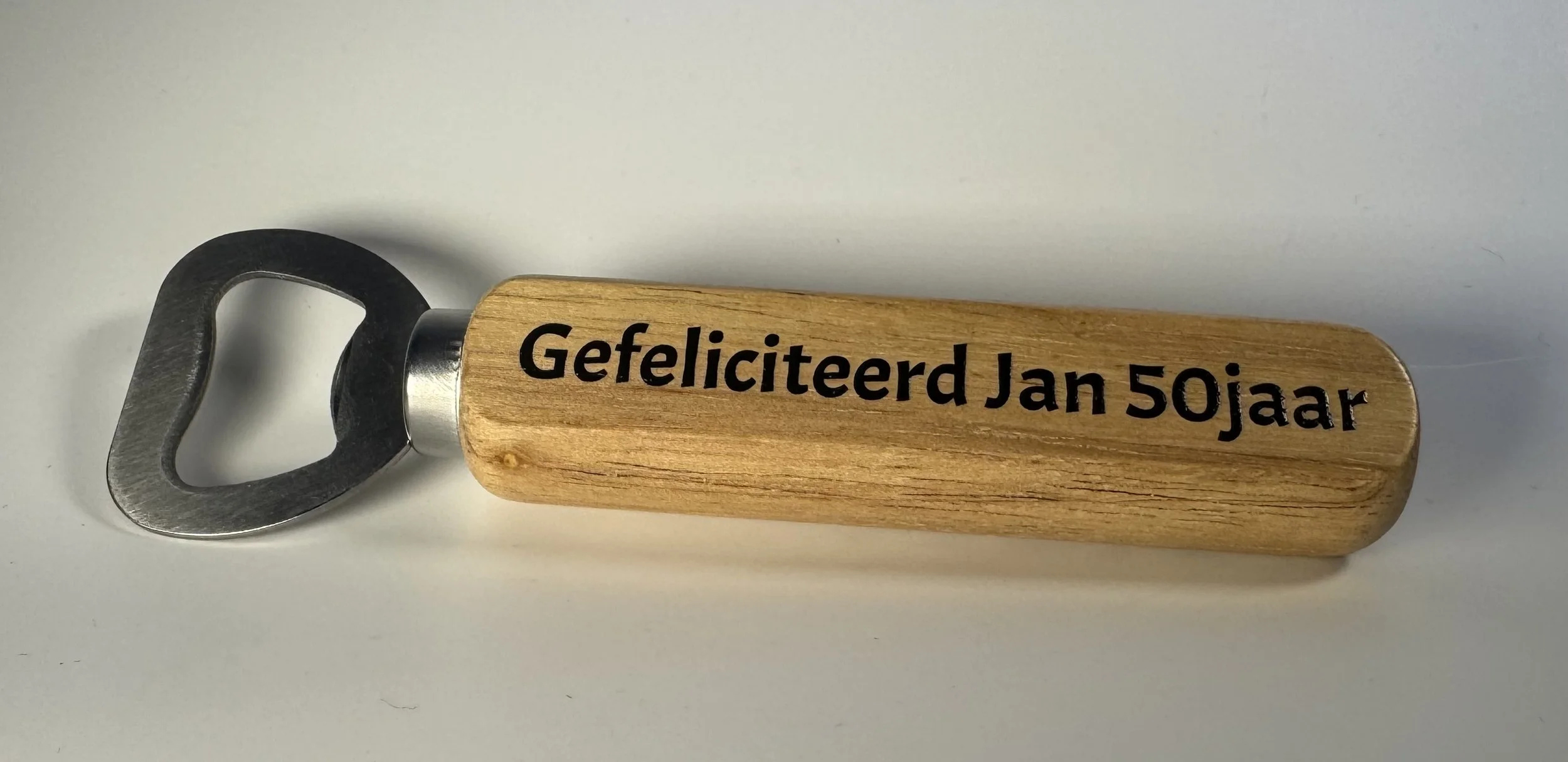 Denk aan UV-print, verf of epoxy — afhankelijk van de uitstraling die je zoekt.