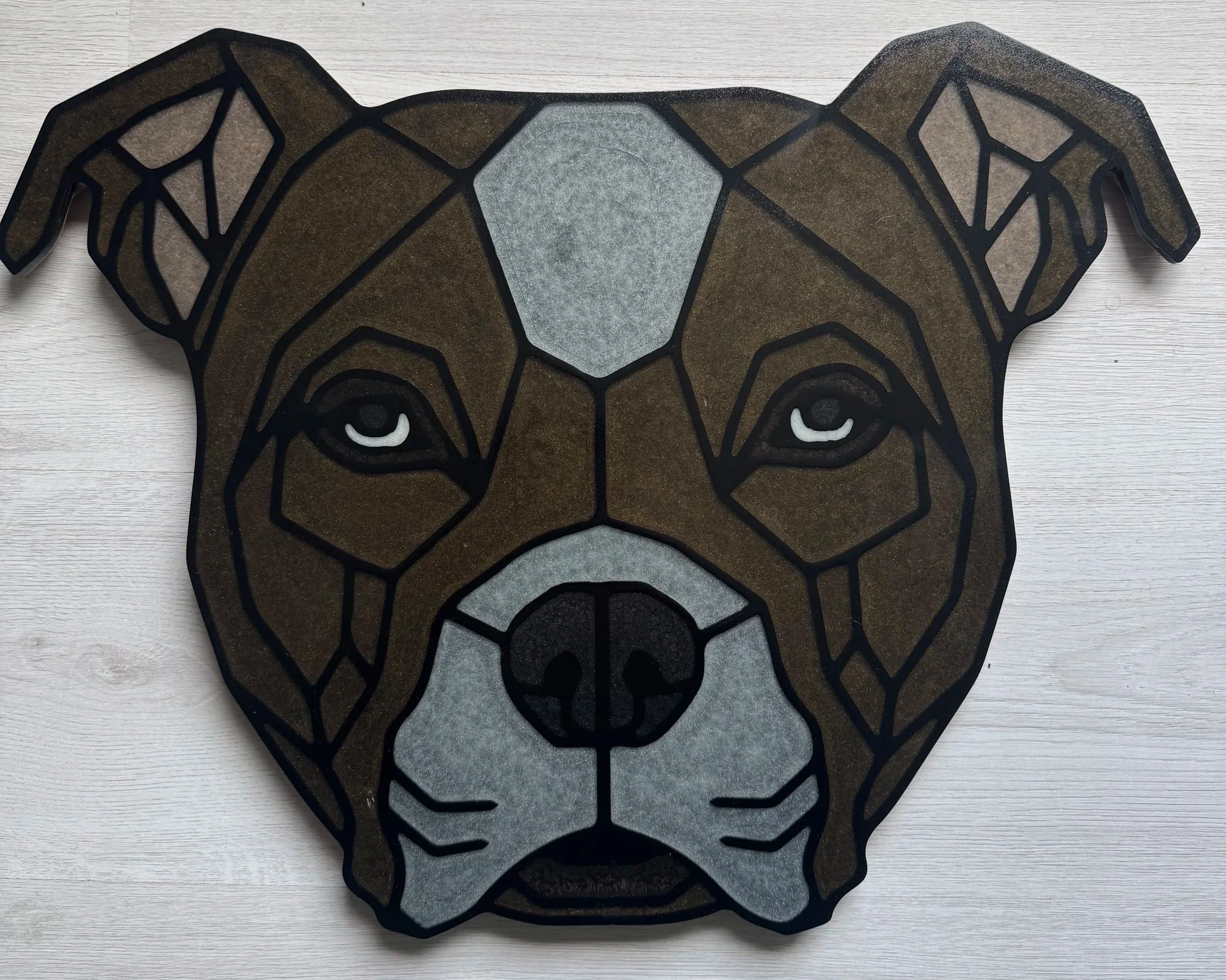 Denk aan UV-print, verf of epoxy — afhankelijk van de uitstraling die je zoekt.